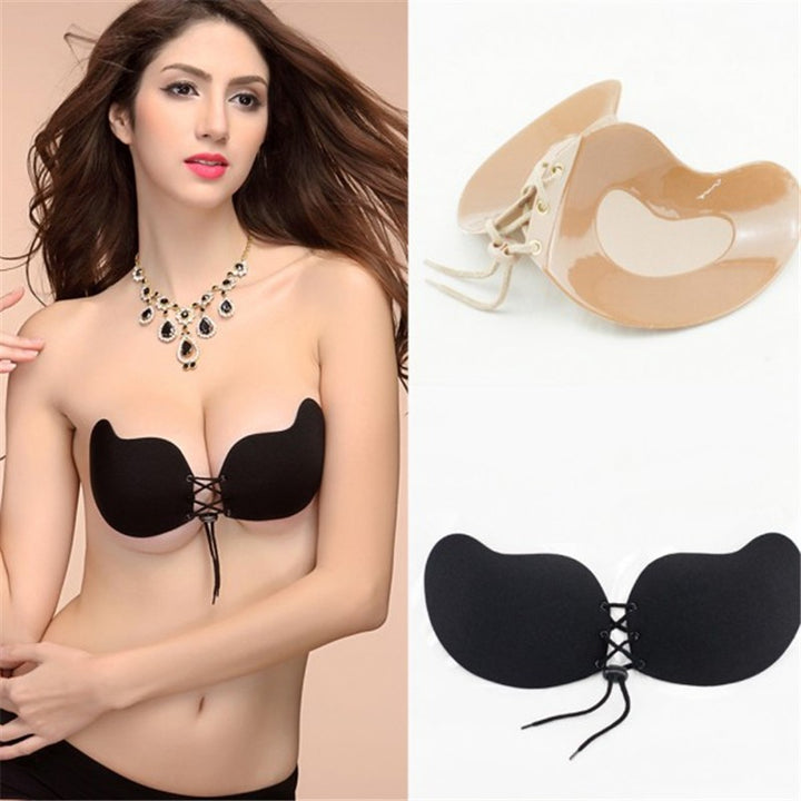 Product Description: Front Lacing Strapless Silicone Push Up Bra