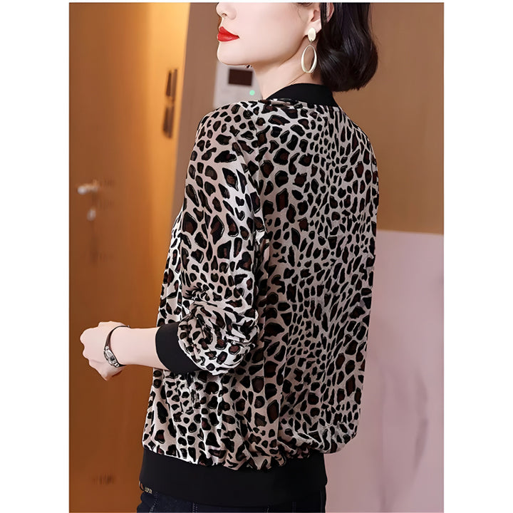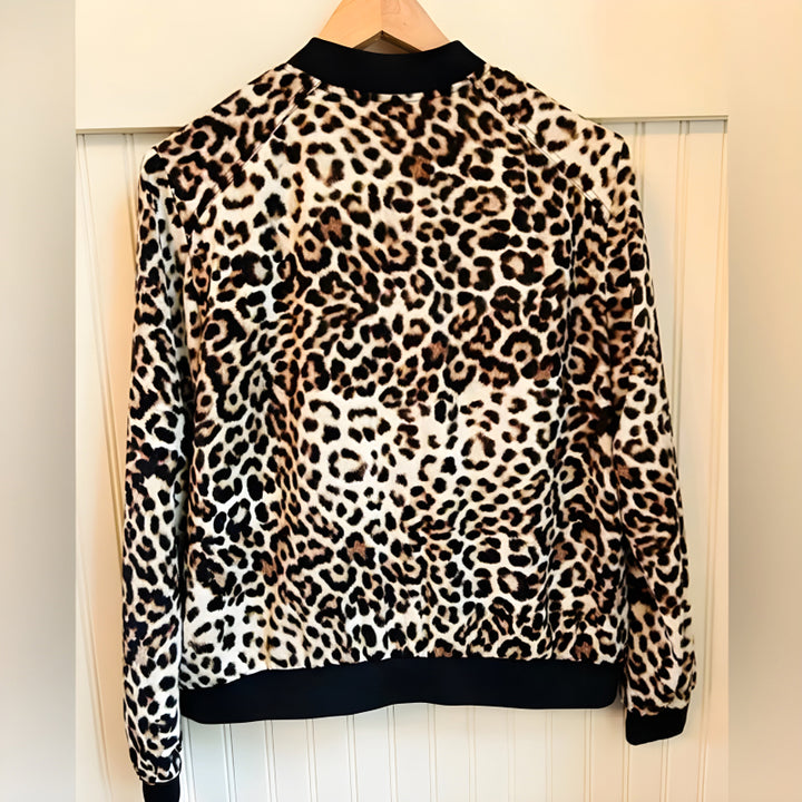 Stylish Leopard-Printed Velvet Zipper Bomber Jacket For Ladies