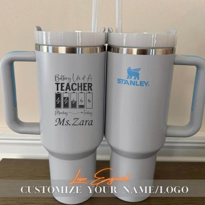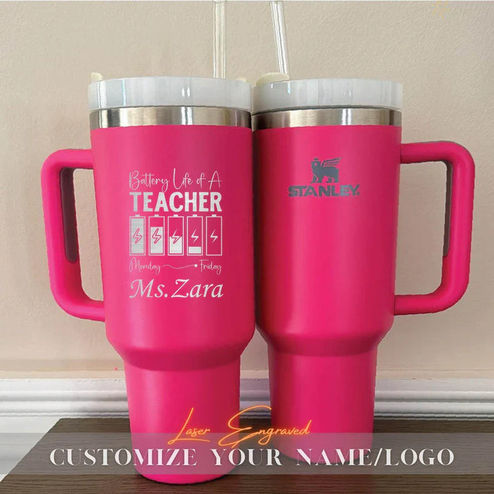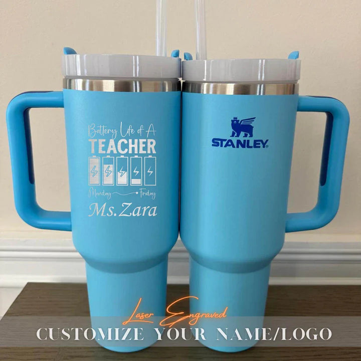 Teacher gift, 40 oz Tumbler, Teacher Tumbler, 40 oz mug, Back to school, Teacher Gift With Name, Teacher Appreciation Gift, Gift For Her Your Unique Gift is Just a Step Away – Start Personalizing Now! Elevate your hydration game with the Stanley Quencher H2.0 FlowState Tumbler – a premium, laser-engraved stainless steel vacuum-insulated tumbler designed to keep you refreshed all day long. Whether you're hiking, commuting, or running errands, this tumbler is your perfect hydration companion, combining style, durability, and functionality. Why Choose the Stanley Quencher H2.0 Tumbler? • All-Day Temperature Control: Keeps drinks hot for 7 hours, cold for 11 hours, and iced for up to 2 days. • Eco-Friendly & Sustainable: Made with 90% recycled 18/8 stainless steel and BPA-free materials, featuring a recycled stainless steel icon inside to highlight its eco-conscious design. • Personalized Perfection: Add a custom touch with high-quality laser engraving that won’t fade, peel, or wear off. Perfect for names, monograms, logos, or meaningful quotes. • Travel-Ready Design: a reusable straw, a comfort-grip handle, and a base that fits most car cup holders (3.1” diameter). • Built to Last: Durable, double-wall vacuum insulation ensures your drinks stay at the perfect temperature, no matter where life takes you. Product Details: • Dimensions: 3.86" L x 5.82" W x 12.3" H • Material: 90% recycled 18/8 stainless steel, BPA-free • Features: Double-wall vacuum insulation, reusable straw, comfort-grip handle, car cup holder compatible Perfect for Every Occasion: • Personalized Gifts: Ideal for weddings, anniversaries, Valentine’s Day, Mother Day, Father Day, Nurse Day, Thanksgiving Day, Halloween Day, Christmas Day, birthdays, or holidays. • Thoughtful Tokens: Great for teachers, brides, grooms, sports enthusiasts, or coffee lovers. • Corporate & Branded Merchandise: Add your logo for a unique promotional item. • Everyday Essentials: A must-have for outdoor adventures, work, or travel. How It Works: 1. Choose Your Tumbler: Select the Stanley Quencher H2.0 Tumbler. 2. Personalize It: Add your custom text, name, monogram, or logo during checkout. 3. Enjoy or Gift: Receive a one-of-a-kind tumbler that’s perfect for you or a loved one. Shipping & Returns: • Processing Time: Orders are processed within 1-6 business days. You’ll receive a tracking number once your order ships. • Return Policy: As each tumbler is made to order, we do not accept returns or exchanges. However, if you have any issues, please reach out—we’re here to help! Thank You for Supporting Our Small Business! — Us Engravo Make It Yours Today – Personalize Now! Personalized Tumbler, Custom Tumbler, Laser Engraved Tumbler, Engraved Travel Mug, Personalized Coffee Tumbler, Custom Insulated Tumbler, Engraved Stainless Steel Tumbler, Personalized Travel Tumbler, Custom Monogrammed Tumbler, Engraved Water Bottle, Custom Name Tumbler, Personalized Gifts, Custom Gifts, Engraved Gifts, Wedding Gifts, Anniversary Gifts, Valentine’s Day Gifts, Unique Gifts for Her, Gifts for Him, Custom Drinkware, Personalized Cup, Gifts for Couples, Custom Stanley, Monogrammed Gifts, Personalized Water Bottle, Gift for Bride, Personalized Travel Mug, Custom Insulated Cup, Stanley Cup, Stanley Tumbler, Personalized Stanley, Custom Stanley Cup, Stanley 40oz, Stanley Travel Mug, Stanley Mug, Stanley Insulated Cup, Stanley Drinkware, Engraved Stanley Cup, Stanley Cup Custom, Stanley Cup Personalized, Stanley 40oz Tumbler, Stanley Cup Gift, Custom Stanley Tumbler, Stanley Water Bottle, Stanley Mug Custom, Stanley Anniversary Gift, Stanley Gift for Him, Stanley Gift for Her, Custom Stanley 40oz Mug for Summer